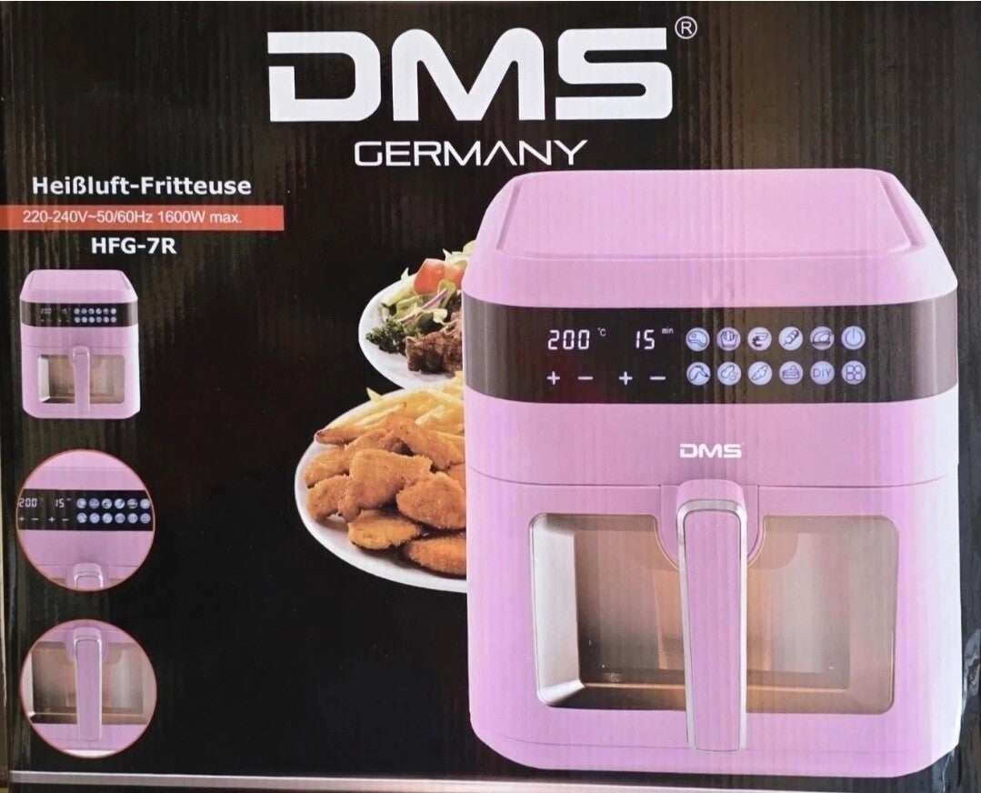 DMS 7 Liter Heißluftfritteuse Fritteuse 10 Programme Display & Timer rosa 1600W