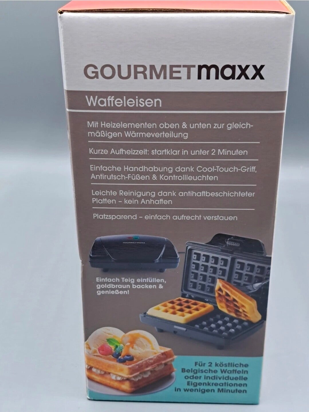 1x GOURMETmaxx Waffeleisen für 2 Belgische Waffeln