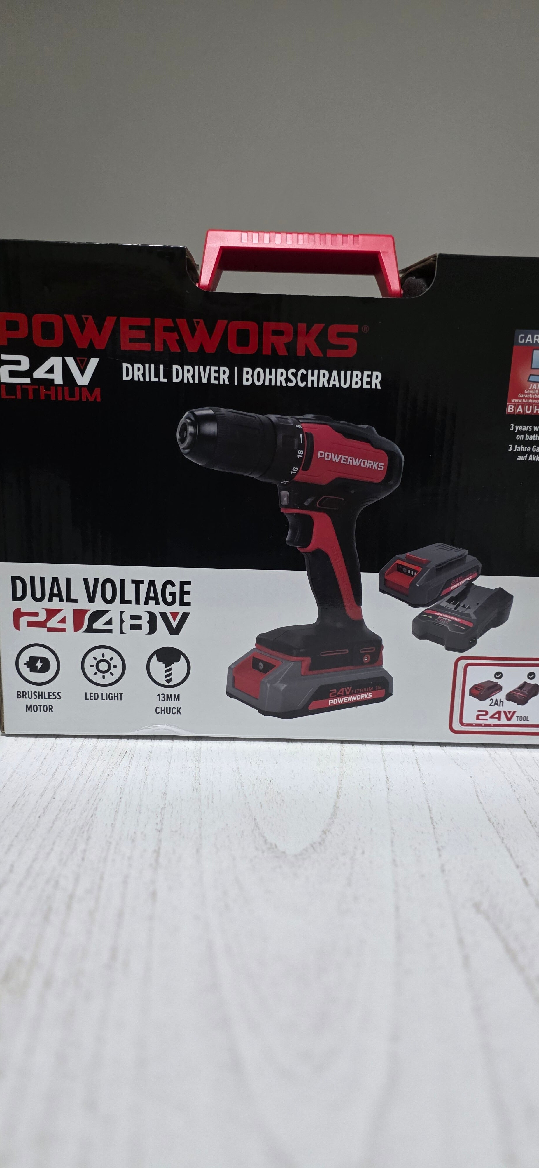 Powerworks 24V Akku-Werkzeug Set mit 4 Geräten in der Originalverpackung.