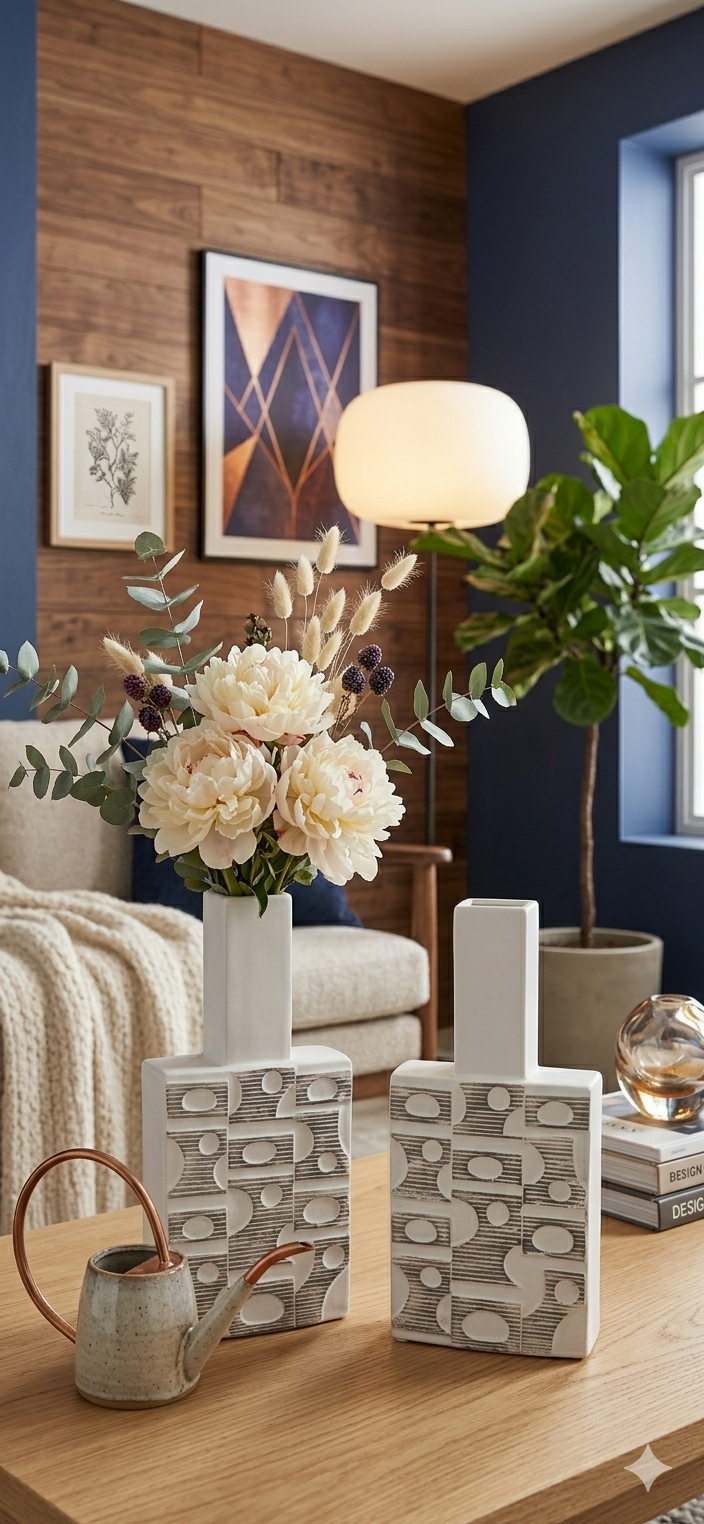 Vielseitig Einsetzbar: Ob als Paar auf einem Sideboard, als Solitär-Skulptur (wie auf dem Bild) oder dekoriert mit minimalistischen Zweigen – sie werten jeden Raum auf.