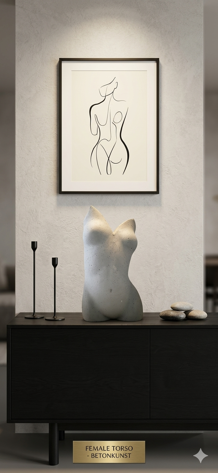 Dekorative Frauen-Torso Skulptur – 50cm Große Beton-Statue für modernes Wohndesign