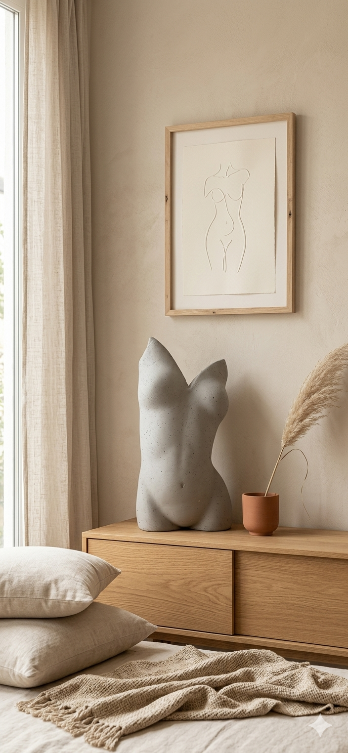 Verleihen Sie Ihrem Zuhause eine Galerie-Atmosphäre mit diesem imposanten Frauen-Torso. Diese 50 cm hohe Skulptur aus hochwertigem Beton in "CW-Grey" feiert die weibliche Ästhetik in ihrer reinsten Form. Die raue, offenporige Struktur des Betons verleiht dem Kunstwerk einen modernen, industriellen Charakter und macht jedes Stück zu einem haptischen Erlebnis.